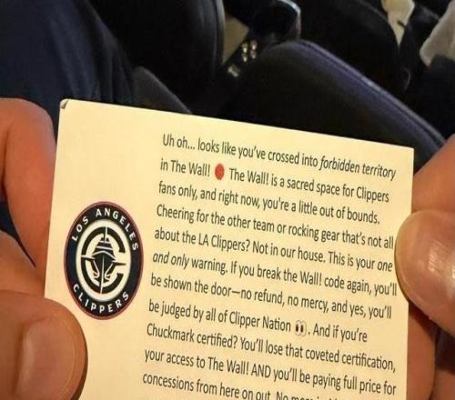 快船主场警告湖人球迷不许坐快船死忠区域,违者将被无退款驱逐