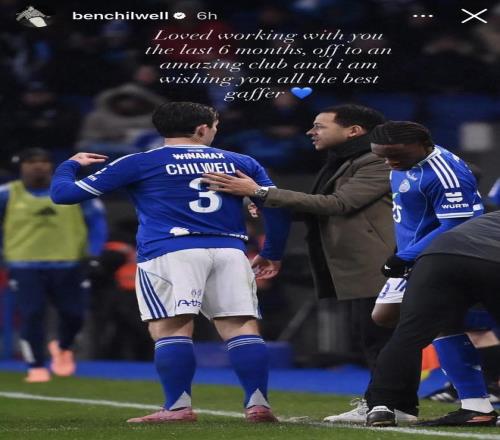 奇尔韦尔发文写道:“过去6个月和你共事的时光很棒,祝你前往新的出色俱乐部一切顺利,教练。”